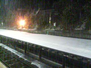 原宿駅に着くころにははっきり雪。